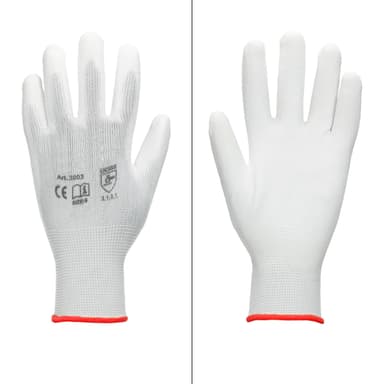 ECD Germany 12 par PU-arbetshandskar, storlek 7-S, färg vit