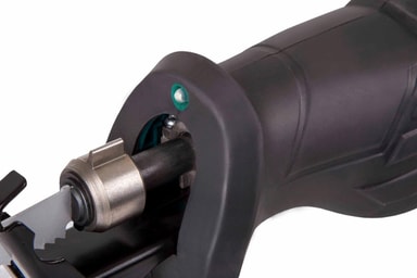 Den i metall tillverkade basplattan längst fram på sågen är justerbar. Därutöver så är tigersågen utrustad med en LED-belysning så att du har en god uppsikt på sågbladet för att kunna göra en säker och snabb kapning. Säkerhet är viktigt: säkerhetsbrytaren förhindrar att maskinen oavsiktligt går igång.. Behov av att byta blad? Enkelt! Sågbladen kan bytas utan att några specialverktyg behöver användas.