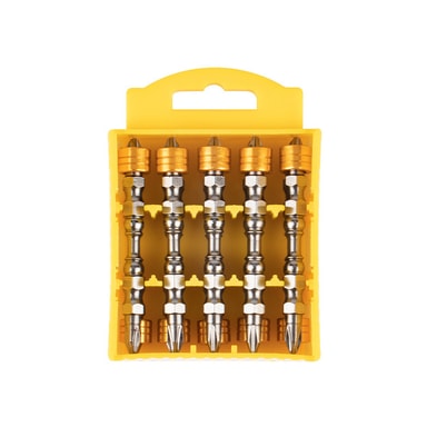 Dubbelsidig design: Dubbelhuvud Skruvmejselbits-designen fördubblar effektivt livslängden för varje bit och erbjuder två användbara ändar till priset av en. Detta är särskilt användbart för uppgifter med hög volym eller när du arbetar med projekt som kräver frekventa bitbyten. Bekvämligheten med att ha en reservände lätt tillgänglig minimerar stilleståndstiden och maximerar produktiviteten. De precisionsbearbetade spetsarna säkerställer en åtsittande passform i skruvhuvuden, vilket minskar risken för glidning och skador på både biten och arbetsstycket.