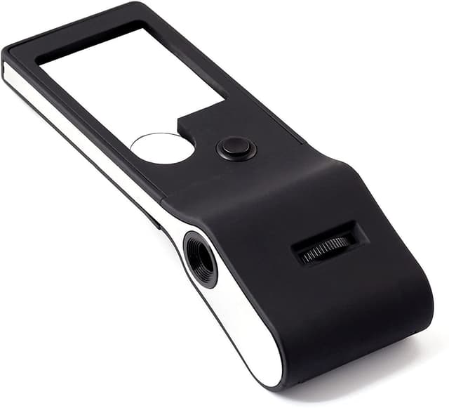 LED-förstoringsglas och mikroskop i ett: Praktiskt all-i-ett-redskap med två asfäriska Perspex-objektiv (stort objektiv med 3x förstoring, litet objektiv med 10x förstoring) och ett kraftfullt LED-mikroskop med upp till 55x förstoring och med inbyggt fokus.