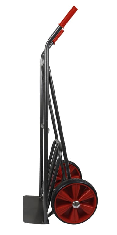 Säckvagn med utfällbar ramp Hjul: ABS, punkteringsfria hjul Ø25 cm Monterad med utfällbar ramp: B29 x L40 cm Fast plattform: B35 x D14 cmLäs mer om produkten