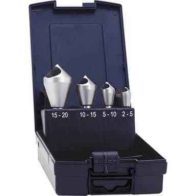 Korshål försänkningset 4 delar 5 mm, 10 mm, 15 mm, 20 mm HSS-E Exact HSSE Querlochsenkersatz 90° 10-27,5mm plus6 05426Ø ·Läs mer om produkten