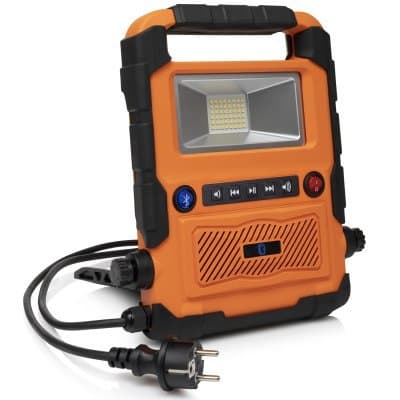 Arbetslampan har en inbyggd Bluetooth-högtalare, så att du kan lyssna på din favoritmusik från din telefon medan du arbetar. Ljuset använder en 20 W LED-lampa. Lampan har en IP44-klassning och lämparsig därför till utomhusbruk.