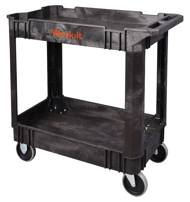 Rullvagn i plast Mått: 866×44×855 mm Mycket robust rullvagn i plast Med 2 fasta och 2 vridbara 5"" gummihjul Monteras snabbt och enkelt