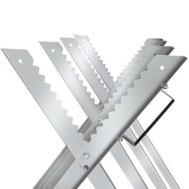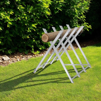 Alla skogshuggare behöver en bra sågbock! Vill du själv kapa din brasved och gärna med en motorsåg? Då är vår sågbock i stål ett idealt val för smart och säkert arbete för och såga ved. Vår sågbock är vidareutvecklad för att bättre passa dina behov. De fyra stockhållarna är tandade för att ge ett stabilt grepp och hålla stocken på plats under sågningen. Dessutom kan bocken justeras för att passa olika stocktjocklekar.Med några enkla handgrepp kan vår sågbock fällas ihop, vilket gör den både lätt att transportera och kompakt att förvara. Köp din nya sågbock från tecktake – det perfekta verktyget för effektiv sågning.