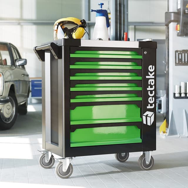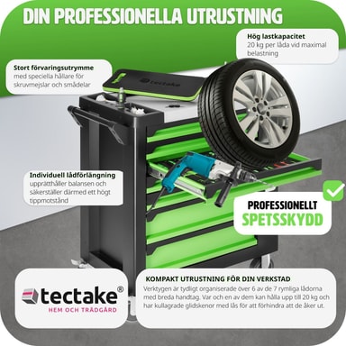 Upptäck den ultimata lösningen för dina hemmaprojekt med vår verktygsvagn med verktyg. Denna robusta och stabila verktygsvagn erbjuder inte bara en imponerande lagringskapacitet utan också ett omfattande verktygsset som gör varje jobb enklare och snabbare. Med sina fem flata och två stora lådor, alla med central säkerhetslåsning, håller denna verktygsvagn dina verktyg organiserade och lättillgängliga.