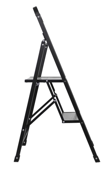 Trappstege i aluminium med stålram och två steg. Med låsanordning, så att trappstegen är säkrad vid uppställning. Endast 4,8 cm i tjocklek i ihopfällt tillstånd. Mått: H 89 × 41 cm Belastning: max. 150 kgLäs mer om produkten