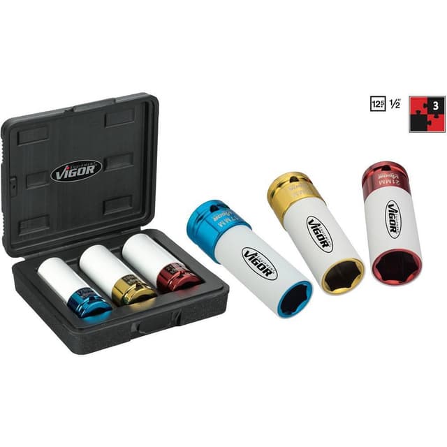 • Vigor Kraft-hylsnyckelinsats-set 1/2 3 delar V2522