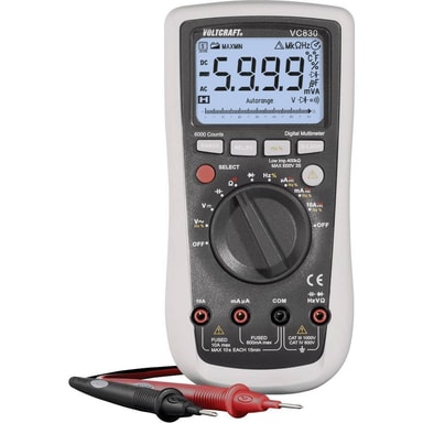 Serie med professionella multimetrar från VOLTCRAFT®. Robusta, tillförlitliga, ändamålsenlig utrustning, ergonomisk form, säker för användaren – dessa attribut beskriver denna professionella multimeter bäst. I fråga om säkerhet sätter denna multimeter en egen standard. Genom den speciella konstruktionen kan höljet endast öppnas vid batteri- och säkringsbyte om apparaten är skild från alla mätledningar. Den inbyggda TLD®-funktionen (Test Lead Detection) varnar användaren om mätkablarna är felanslutna. Vid ingångspänning 30 V visas en varningssymbol på displayen. Sist men inte minst har det unika säkerhetskonceptet ett robust hölje med formsprutat mjukgummiskydd, högeffektssäkringar på 1000 V med en frånslagningskapacitet på 30 kA, samt en impedansomkoppling som med en knapptryckning minskar ingångsmotståndet för att undvika felmätningar p.g.a. läckspänning. En optoelektroniskt gränssnitt för överföring och analys av mätdata på datorn finns som standard. Apparaten är godkänd för mätningar inom mätningskategorierna CAT IV 600 V och CAT III 1000 V, samt är den testad enligt EN-61010.