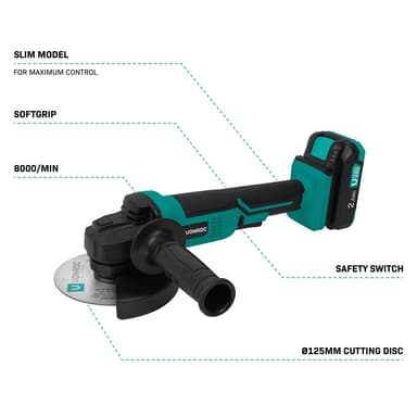 Denna VONROC vinkelslip (AG504DC) levereras som ett komplett set, inklusive ett 2.0Ah batteri (CD828AA) och en snabbladdare. Batteriet och laddaren är fullt kompatibla med andra maskiner i vårt VPower 20V-batterisystem, vilket gör dem till det perfekta tillskottet till din VONROC-samling.