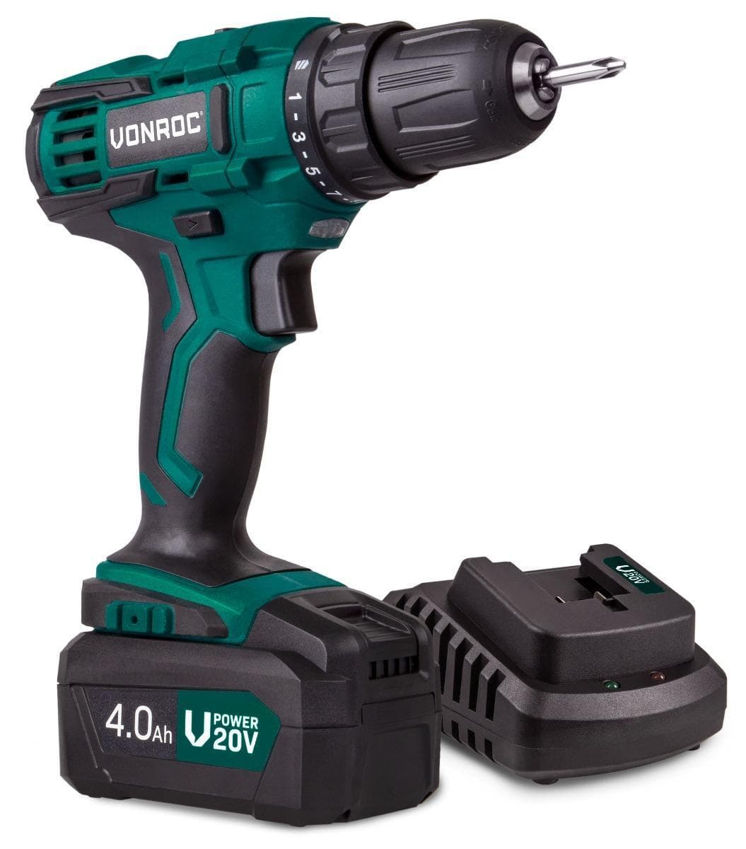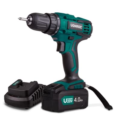 Bygg, skruva och borra med kraft. VONROC 20V borrskruvdragare levereras med 4.0Ah batteri och snabbladdare. Med 40Nm vridmoment, 2 hastigheter och 21 momentlägen klarar du allt från montering av möbler till tuffa byggprojekt – helt utan sladdar.