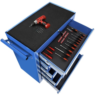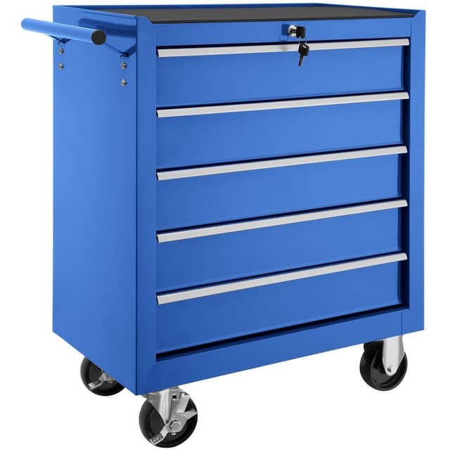 • tectake Verktygsvagn med 5 lådor 69 x 33 x 79 cm Blå