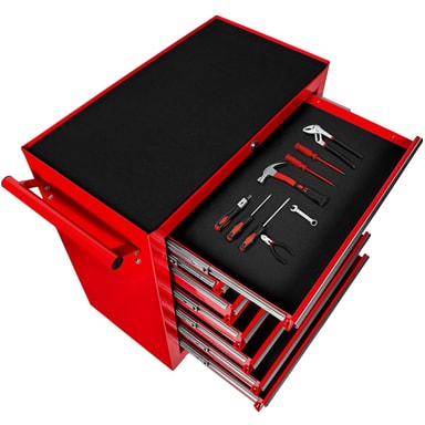Med tectakes verktygsvagn får du optimal verktygsförvaring - alla verktyg hittar sin plats och du hittar dem! Denna Verktygsvagn har sju stora och dessutom låsbara, kullagrade lådor.Läs mer om produkten