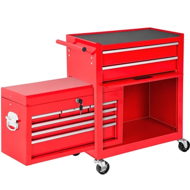 Denna verktygsvagn övertygar med det lilla extra - det löstagbara, fastsättningsbara och mobila överskåpet är raffinerat och praktiskt och fungerar bra som verktygslåda! Med denna verktygsvagn med överskåp har du allting nära till hands när du behöveLäs mer om produkten