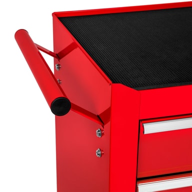 Denna verktygsvagn erbjuder det lilla extra – det löstagbara, fastsättningsbara och mobila överskåpet är både praktiskt och elegant, och fungerar utmärkt som en verktygslåda. Med denna verktygsvagn har du allt inom räckhåll när du behöver det. Oavsett om den används i hobbyverkstaden eller i en professionell miljö, tillgodoser verktygsvagnen alla behov med sina kullagrade lådor. För extra funktionalitet är lådorna och hyllplanet utrustade med halkfria mattor, vilket ger extra stabilitet. 4 robusta hjul gör att du enkelt kan flytta verktygsvagnen, vilket underlättar vid användning på olika platser.