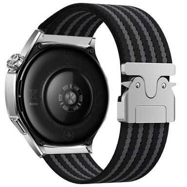 Uppgradera din Huawei GT5/Watch 3/4 Pro med detta 22mm svarta vävda klockarmband i nylon. Har ett säkert fallskärmspänne, justerbart vågmönster och andningsbart material för komfort hela dagen. Perfekt för alla tillfällen.Läs mer om produkten