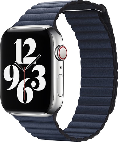 Ändra looken på din Apple Watch med Apple 44 mm läderloop som är tillverkat av läder och som har elegant textur och två magneter som säkerställer ett snabbt och säkert lås.
