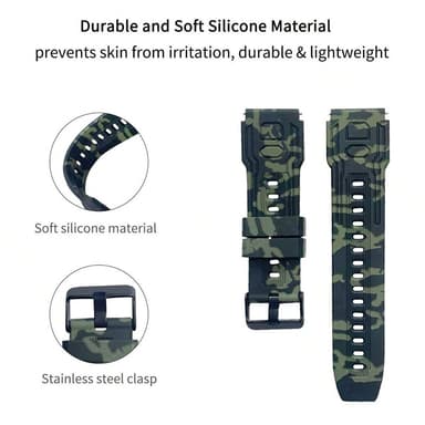 För Garmin Fenix 7 / 7 Pro / 6 / 5 Ersättningsarmband 22 mm justerbart silikonarmband - Kamouflage Grön