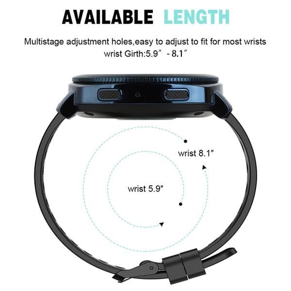 Armband i silikon till Samsung Smart Watches 20mm - Svart Sportig, bekvämt och tåligt armband i silikon till din Samsung Smart Watch 20mm. - Material: silikon - Lämplig för handleder från 5,9 tum till 8,1 tum - Flexibilitet, bra mjukhet och hög komfort - Quick release design, lämplig för smarta klockor - Materialet är mjukt och skönt, och känns bra - Längden på remmen är lätt att justera för att passa din handled - Lätt att montera, kommer inte att skada klockan - Notera: endast klockremmen, inte klockan - Vikt: ca 16 gram - Storlek: 17x6 cm Färg : Svart