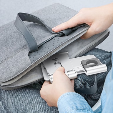 Detta eleganta stativ är designat för att vara din idealiska följeslagare vid skrivbordet eller sängen, och ger en säker och elegant lösning för laddning och användning av dina enheter.