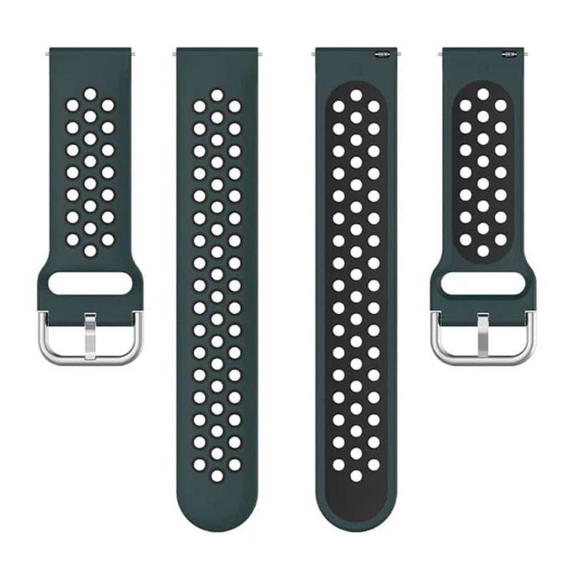 Ventilerad tvåfärgat klockarmband tillverkat av silikon som ger behaglig komfort. Den unika ventilerade designen förbättrar andningsförmågan i din hud och håller handleden sval och torr under högpresterande aktiviteter. Utrustad med ett robust clasp spänne för enkel justering av passformen.