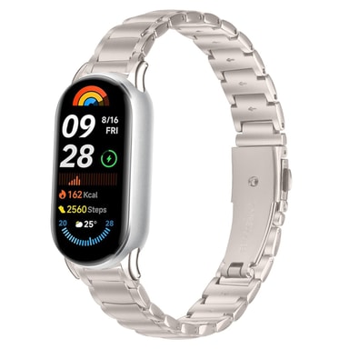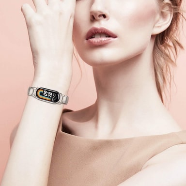 Förbättrad stil och elegans: Lyft din Xiaomi Band 8, 9 eller 10 med detta sofistikerade klockarmband i rostfritt stål. Den slimmade designen med konstgjorda tre-pärlor ger en touch av elegans och förfining till din handled, vilket gör den perfekt för både avslappnade och formella tillfällen. Detta armband förvandlar omedelbart din aktivitetsmätare till en snygg accessoar, vilket säkerställer att du ser bäst ut oavsett vart du går. De intrikata detaljerna och den polerade finishen skapar en premiumestetik som kompletterar din personliga stil. Njut av den perfekta blandningen av mode och funktion med detta utsökta klockarmband.