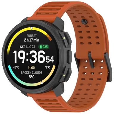 Bekväm och flexibel: Upplev oöverträffad komfort med detta klockarmband i flytande silikon. Det mjuka, flexibla materialet formar sig försiktigt efter handleden och ger en bekväm passform hela dagen. Armbandet är utformat för att vara lätt och andas, vilket förhindrar svettuppbyggnad och irritation, vilket gör det idealiskt för träning, utomhusäventyr och vardagsbruk. Njut av rörelsefriheten utan att ge avkall på stil eller komfort. Detta armband är kompatibelt med Suunto Vertical 2 och andra klockor med 22 mm bandbredd.