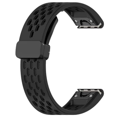 Bekvämt silikonmaterial: Detta Garmin-klockarmband är tillverkat av högkvalitativt silikonmaterial som är mjukt, flexibelt och skonsamt mot huden. Det är perfekt för daglig användning och sportaktiviteter, eftersom det andas och transporterar bort fukt effektivt.