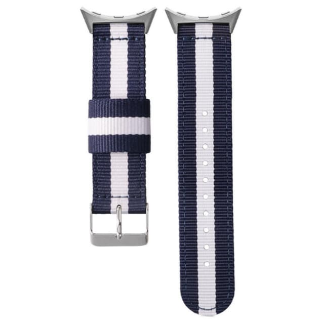 Snygg och mångsidig design: Den klassiska blå och vita färgkombinationen med ett silverspänne ger en touch av sofistikering till din Google Watch 3. Denna mångsidiga design kompletterar både vardags- och formell klädsel, vilket gör den lämplig för vardagsbruk.