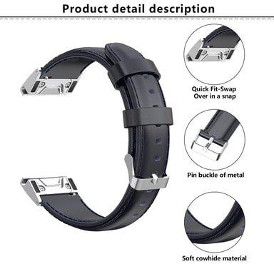 Ett armband tillverkat av äkta koläder. Det mjuka och bekväma materialet garanterar optimal komfort. Armbandet finns i en mängd olika färger så att du kan hitta den perfekta för din stil. Med ett spänne med flera hål kan du enkelt justera storleken. Det är den perfekta ersättaren för ditt gamla, slitna armband och passar perfekt till både arbete, fritid och vardag. QuickFit-fäste gör det enkelt att använda.