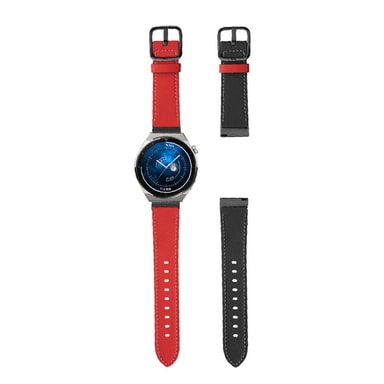 • Klockarmband i äkta läder - 22 mm Svart+röd Svart spänne