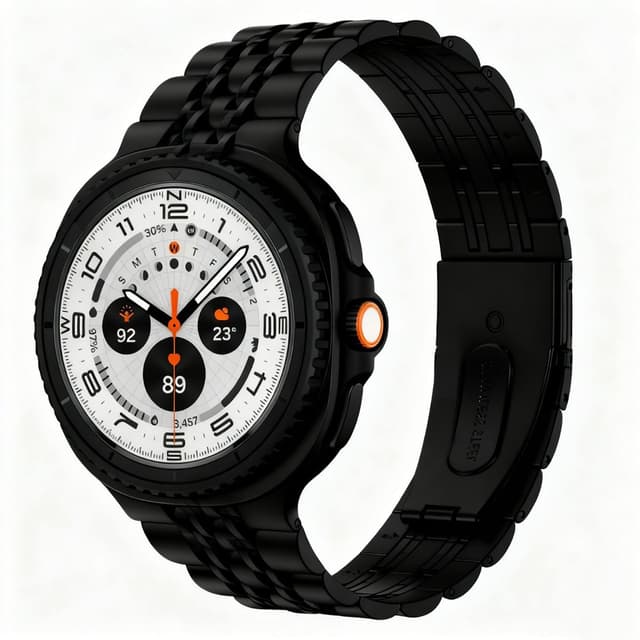 Stilfull sjubandsdesign: Sjubandslänkdesignen erbjuder en klassisk och elegant estetik som kompletterar Samsung Galaxy Watch 8/8 Classic. Det intrikata arrangemanget av länkarna skapar en visuellt tilltalande textur och ger djup till den övergripande designen. Den släta, polerade ytan på varje band förbättrar armbandets lyxiga känsla och säkerställer en bekväm passform på din handled. Denna design är tillräckligt mångsidig för att bäras i både avslappnade och formella sammanhang, vilket gör det till ett perfekt tillbehör för alla tillfällen.