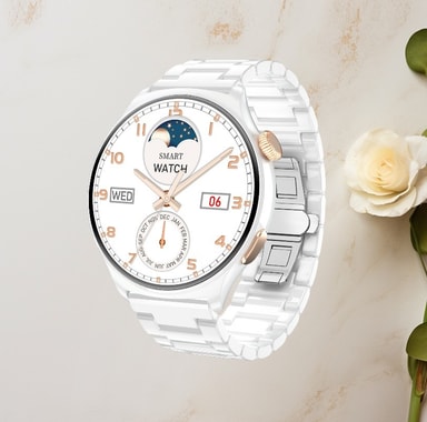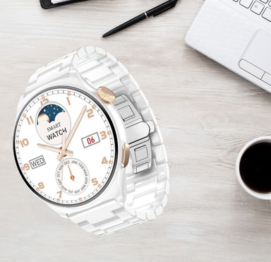 • MX16 Smartwatch: 1.43"" HD-skärm, Bluetooth-samtal Vit + Silver