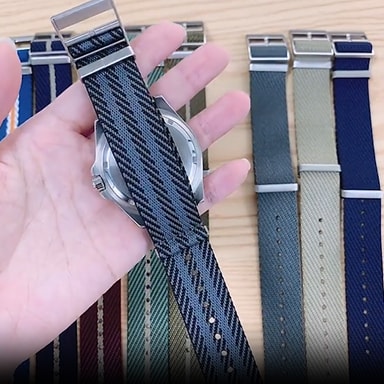 Komfortpassform: Detta klockarmband är designat med ett mjukt nylonmaterial som formar sig bekvämt efter din handled, vilket säkerställer en perfekt passform för vardagsbruk.