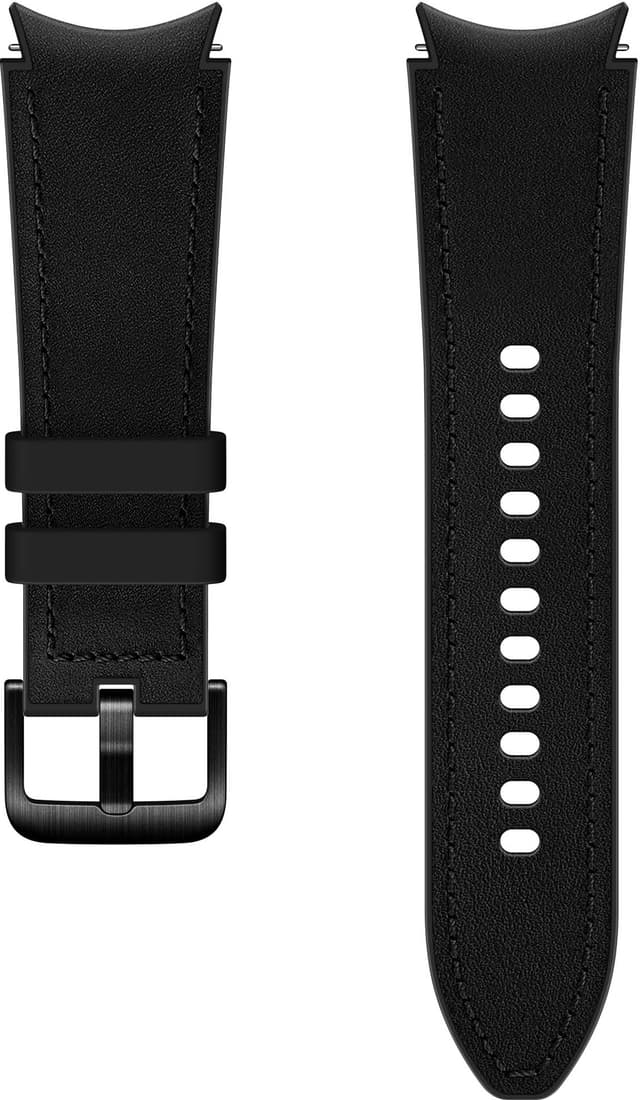 Samsung Galaxy Watch 4 Hybrid läderband kombinerar premiumkvalitetsläder och ett svettåligt inre fluorelastomer-lager i en utseendemässigt tillfredsställande utformning som ger dig både funktionalitet och stil i alla situationer.