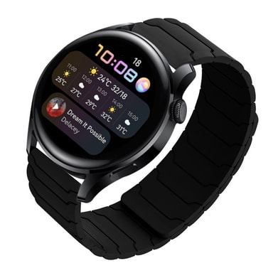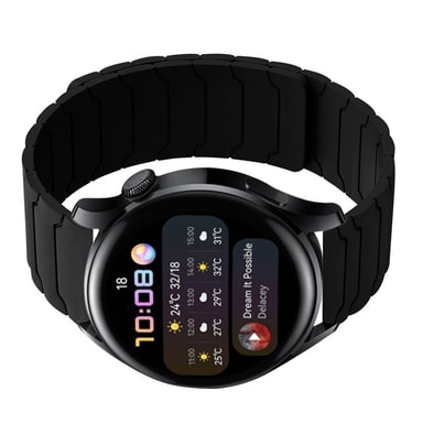 Säkert magnetlås: Upplev oöverträffad säkerhet och bekvämlighet med vår magnetiska låsdesign. Detta innovativa stängningssystem säkerställer att din klocka sitter säkert på plats och eliminerar risken för oavsiktlig glidning. Den starka magnetiska anslutningen ger ett pålitligt grepp, vilket ger dig sinnesfrid under alla aktiviteter. Magnetlåset är enkelt att justera, vilket möjliggör en perfekt passform på alla handledsstorlekar. Den sömlösa designen ger en touch av elegans till din smartklocka, vilket gör den lämplig för både avslappnade och formella tillfällen. Den magnetiska stängningen är också otroligt bekväm, vilket gör att du snabbt och enkelt kan ta på eller av din klocka utan krångel med traditionella spännen eller lås. Den här funktionen är särskilt användbar för dem med begränsad fingerfärdighet eller som alltid är på språng. Det magnetiska armbandet är kompatibelt med Samsung Watch 5, Samsung Watch 6, Samsung Watch 7, Huawei GT3, Huawei GT4, Huawei GT5 och Amazfit.