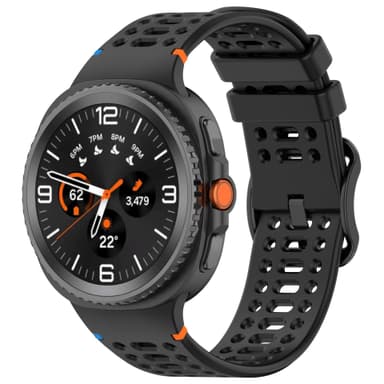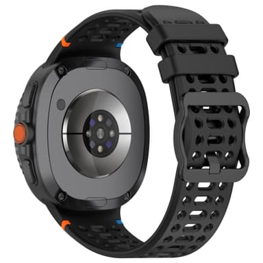 Säker och justerbar passform: Armbandet är utrustat med ett robust spänne som säkerställer att din Samsung Galaxy Watch 8 eller 8 Classic sitter säkert på plats. Spännet är enkelt att justera, vilket gör att du kan anpassa passformen efter din handledsstorlek. Detta minimerar risken för att klockan glider eller faller av, även under intensiva aktiviteter. Den justerbara designen gör det också enkelt att ta av och på armbandet.