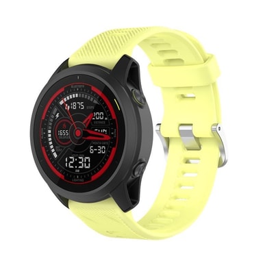 Specifikationer Färg: Gul Infästning: 22mm Bredd: 22mm Längd: 212mm Handleds omkrets: 140-220mm Passar: Garmin Forerunner 745 Modellnr: 745              Innehåll 1 x Silikon Sport Armband 2 x Skruvmejsel