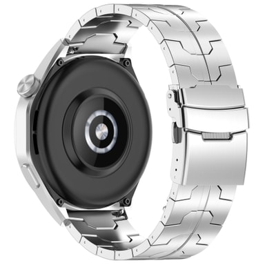 Premium Titanium Build: Tillverkad av en blandning av robust titan och rostfritt stål, detta klockarmband erbjuder exceptionell styrka och en lyxig känsla. Den är byggd för att tåla dagligt slitage samtidigt som den behåller sitt eleganta utseende.