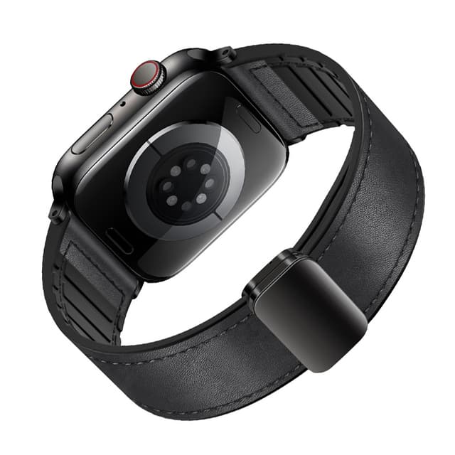Säkert Magnetspänne: Detta armband är utrustat med ett starkt dubbelt magnetspänne och garanterar en säker och justerbar passform. Magneterna är noggrant utformade för att förhindra oavsiktlig lossning, vilket håller din Apple Watch säker.