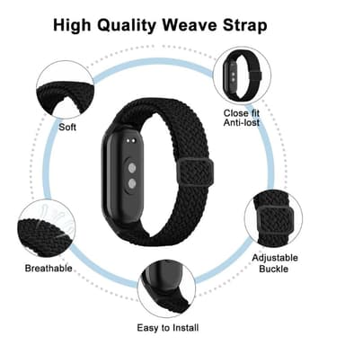 Säker och justerbar passform: Designad särskilt för Xiaomi Band 8 Active, vilket garanterar klockbandet en säker och exakt passform. Det justerbara spännet gör att du kan anpassa dess storlek för optimal komfort. Bandet passar handleder från 11,5 cm till 18,5 cm.