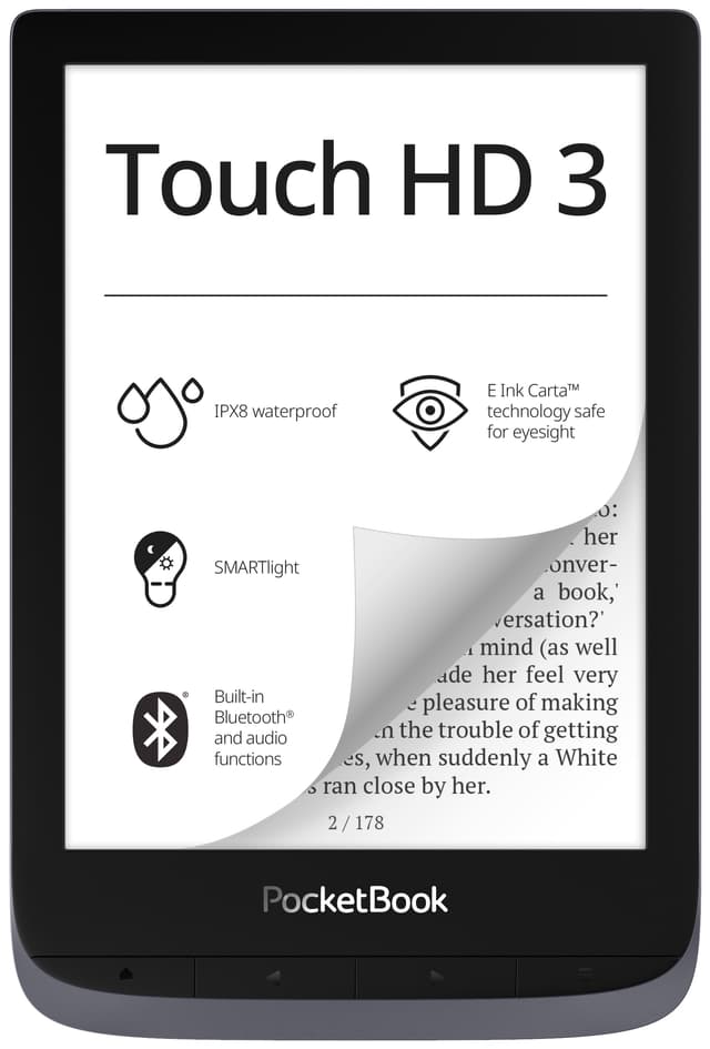 Läs dina favoritböcker på eleganta och funktionsspäckade PocketBook Touch HD 3 eBook 16GB med 6-tums E-ink Carta HD+-skärm, Wi-Fi och Bluetooth-anslutning för text-till-tal samt extra lång batteritid.Läs mer om produkten