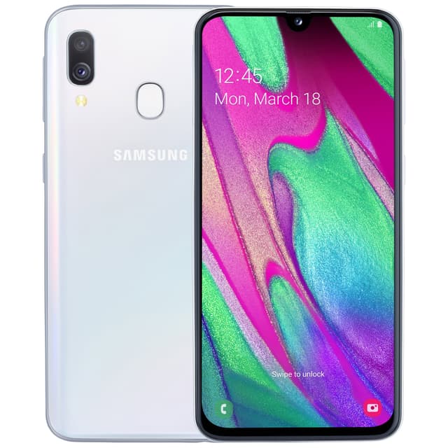 Samsung Galaxy A40 drar till sig blickar med sin charmiga 3D Glasstic-baksida och en minimalistisk Infinity-U-design på framsidan.