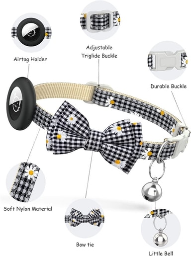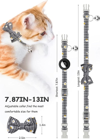 Airtag Skal Bow Cat Collar med Breakaway Bell Och Reflective Adjustable Strap - Svart
