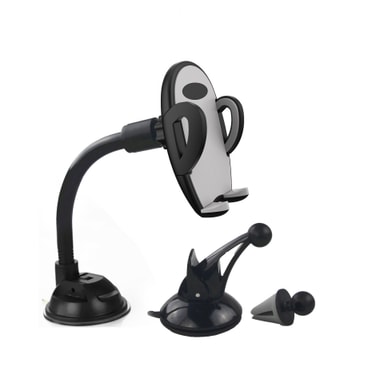 Mångsidiga placeringsalternativ: Detta biltelefonfäste erbjuder tre olika monteringsalternativ: instrumentbräda, vindruta och luftventil. Paketet innehåller en klämpanel, en svanhals sugkoppsbas, en stationär sugkoppsbas och ett luftventilsfäste, vilket ger flexibilitet för att passa dina önskemål och fordonstyp.