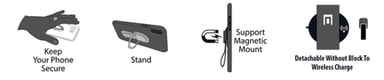 • avtagbar flexibel fingerrem för ett säkert grepp och förbättrad enhandsmanövrering – för selfies eller för att läsa eller skriva meddelanden