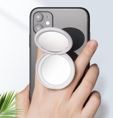 Inte bara en hållare för din mobiltelefon, även byggd med en genomskinlig spegel. Du kan hålla den med fingrarna för att skydda telefonen från att tappa eller stödja handfri visning. 2 växlar justerbara. Tillgodose enkelt dina olika behov.