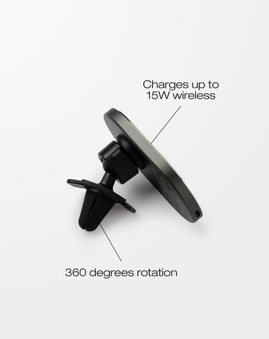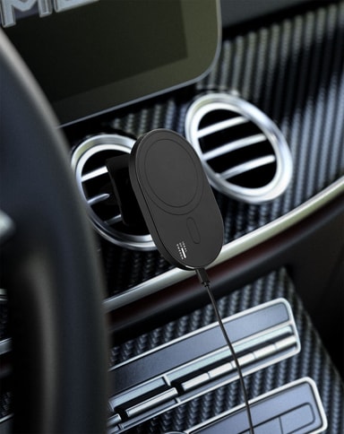 Upptäck smidig laddning och säker användning i bilen med vår Car Vent Mount – den perfekta lösningen för att hålla mobilen på plats under färd. Med MagSafe-kompatibilitet, trådlös laddning upp till 15W och flexibel rotation får du både bekvämlighet och trygghet på vägen. Den kompakta designen smälter in i interiören och ser till att mobilen alltid är nära till hands.