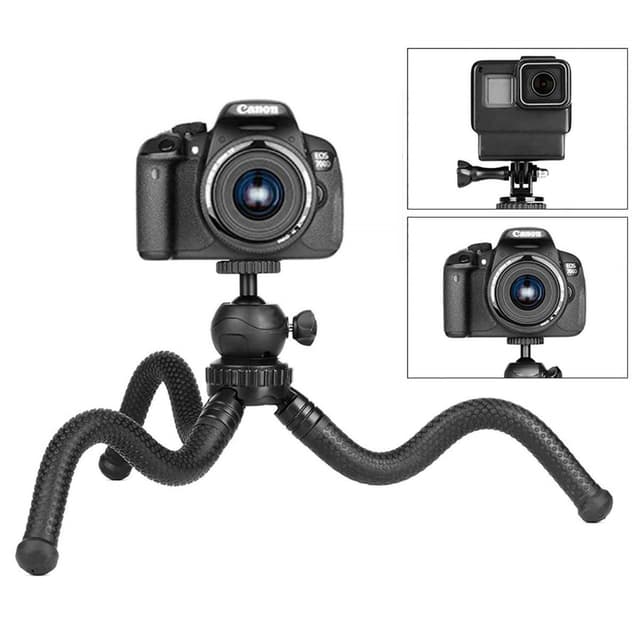 Flexibel och robust: Detta böjbara stativ är tillverkat av gummiöverdragna ben med hög densitet vilket gör det ytterst slitstarkt. Ett kamerastativ som kan användas och fixeras nästan var som helst: oavsett om det är en cykel, pelare, räcken, grenar eller stolar, så att du kan filma utan att vara begränsad av platsens förutsättningar.