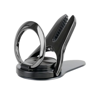 Multifunktionell mobilring det här fästet sätter du fast på din mobil med det dubbelhäftande tejpen som följer med. Du kan sen använda sen som ringhållare, stöd till telefonen, sätta fast den på magnethållare eller fästa den i ventilationen i bilen. Mycket smart uppfinning som gör användandet med din mobil mer brett. Storlek: 3,3 x 1 x 6,1 cm material: metall